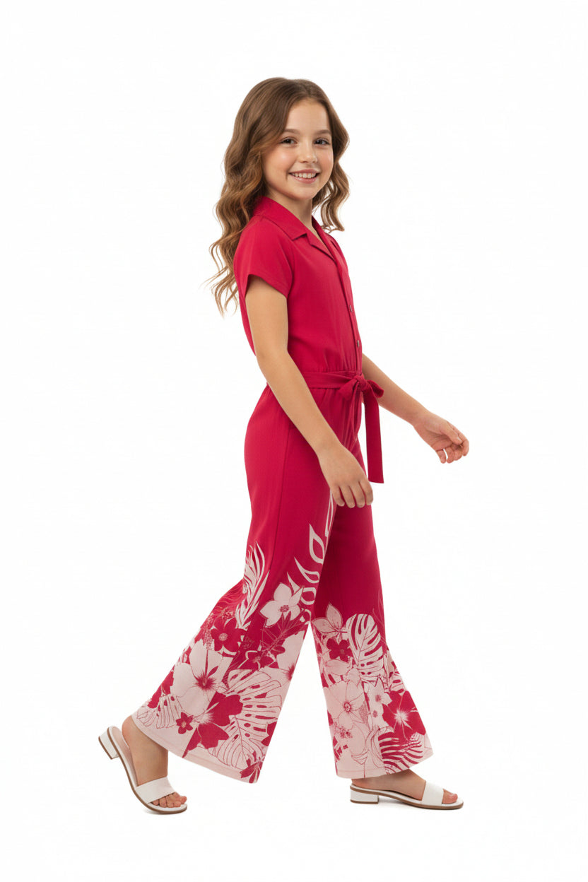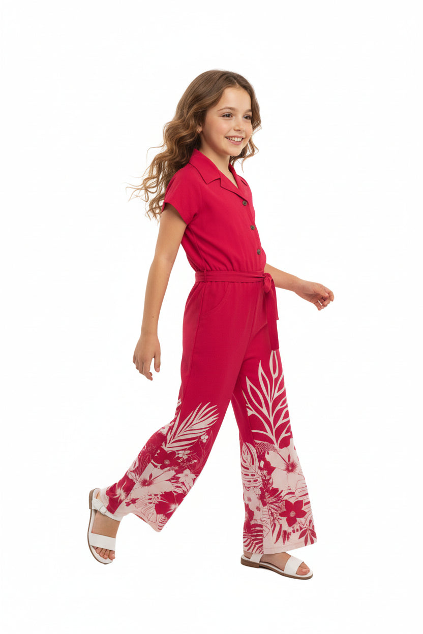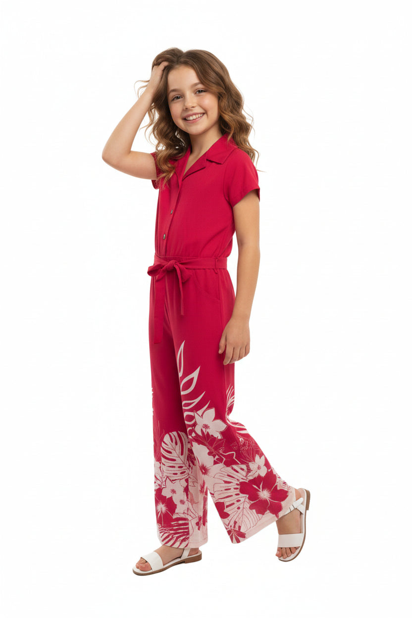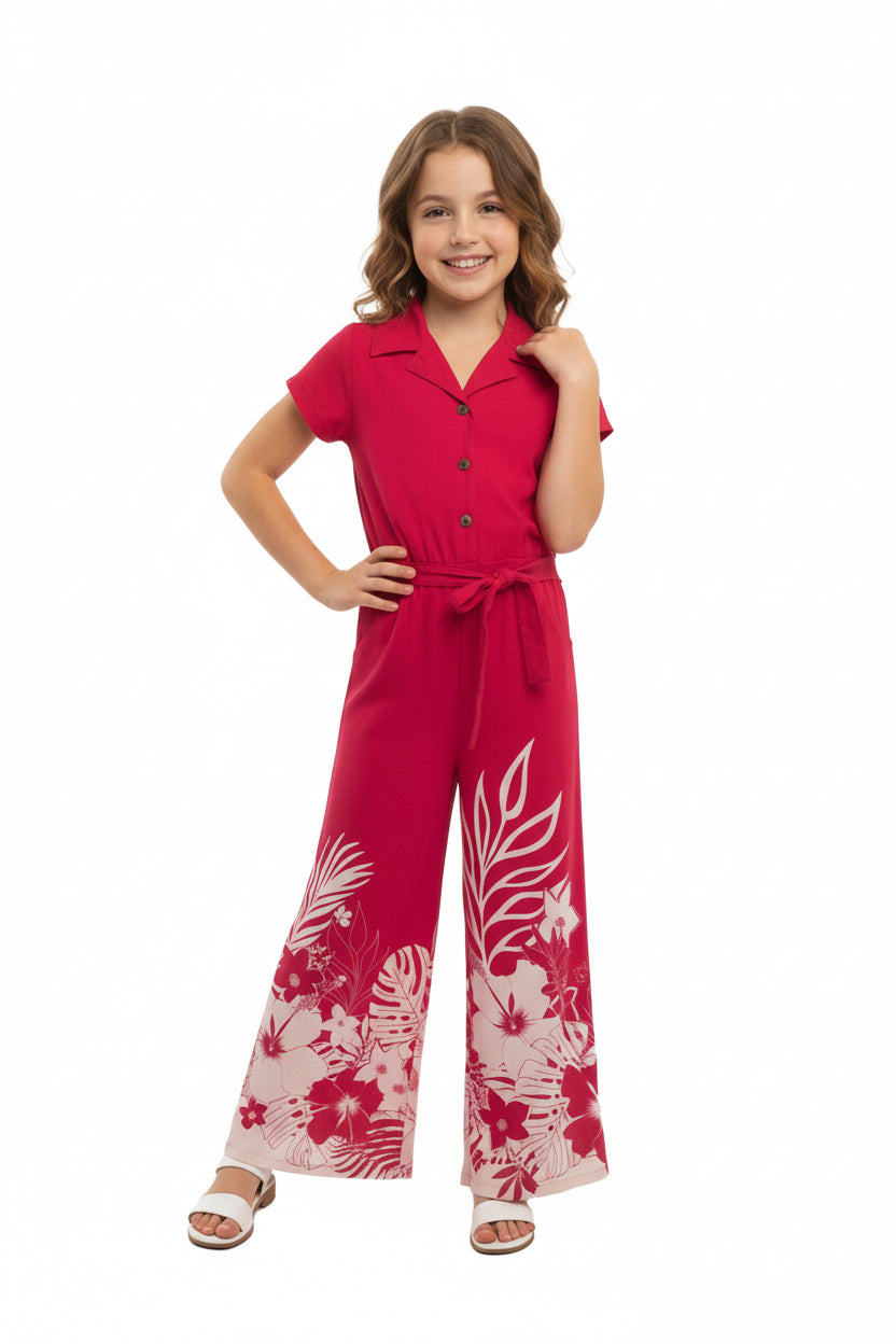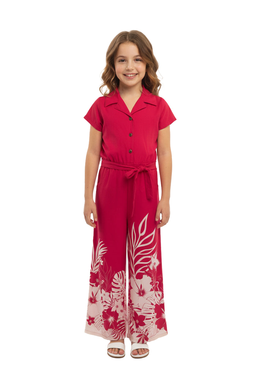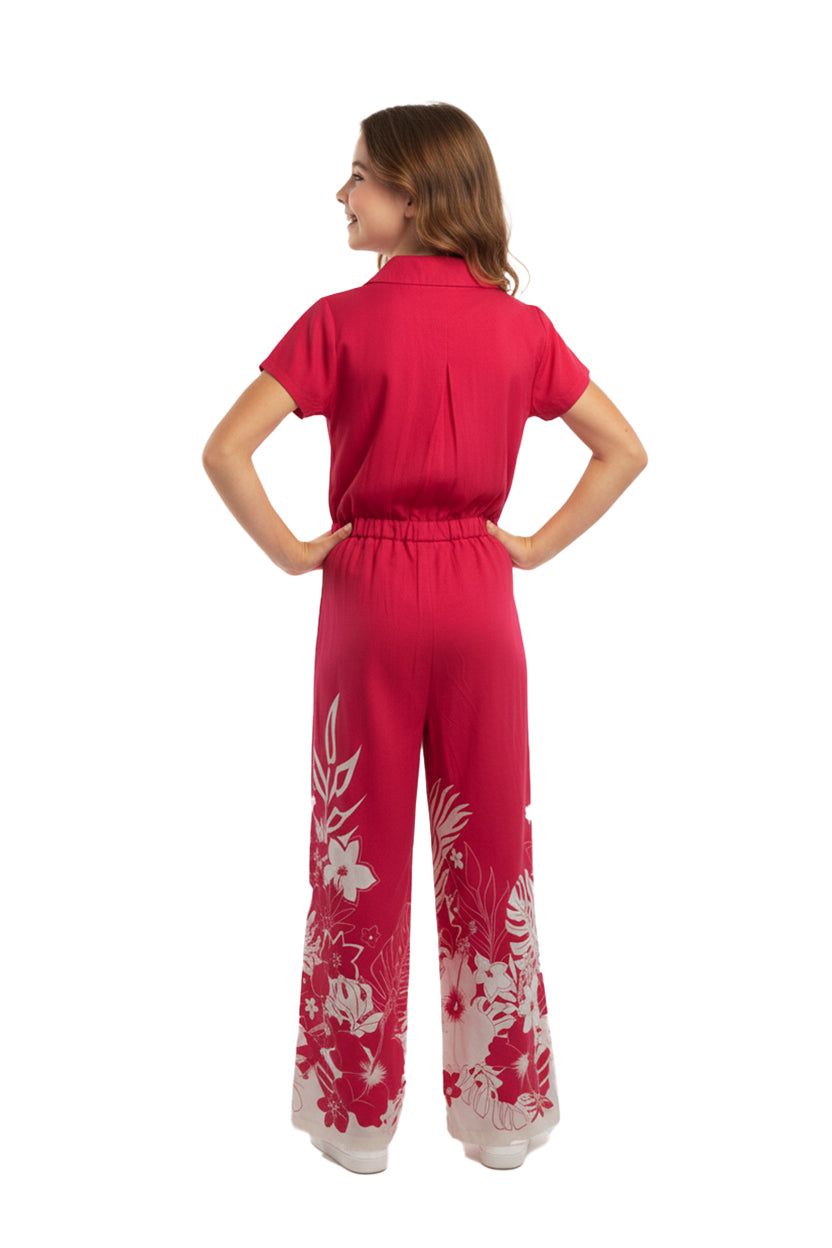 Girl Hawaiian Wide Leg Full Length Jumpsuit in Indri Pink