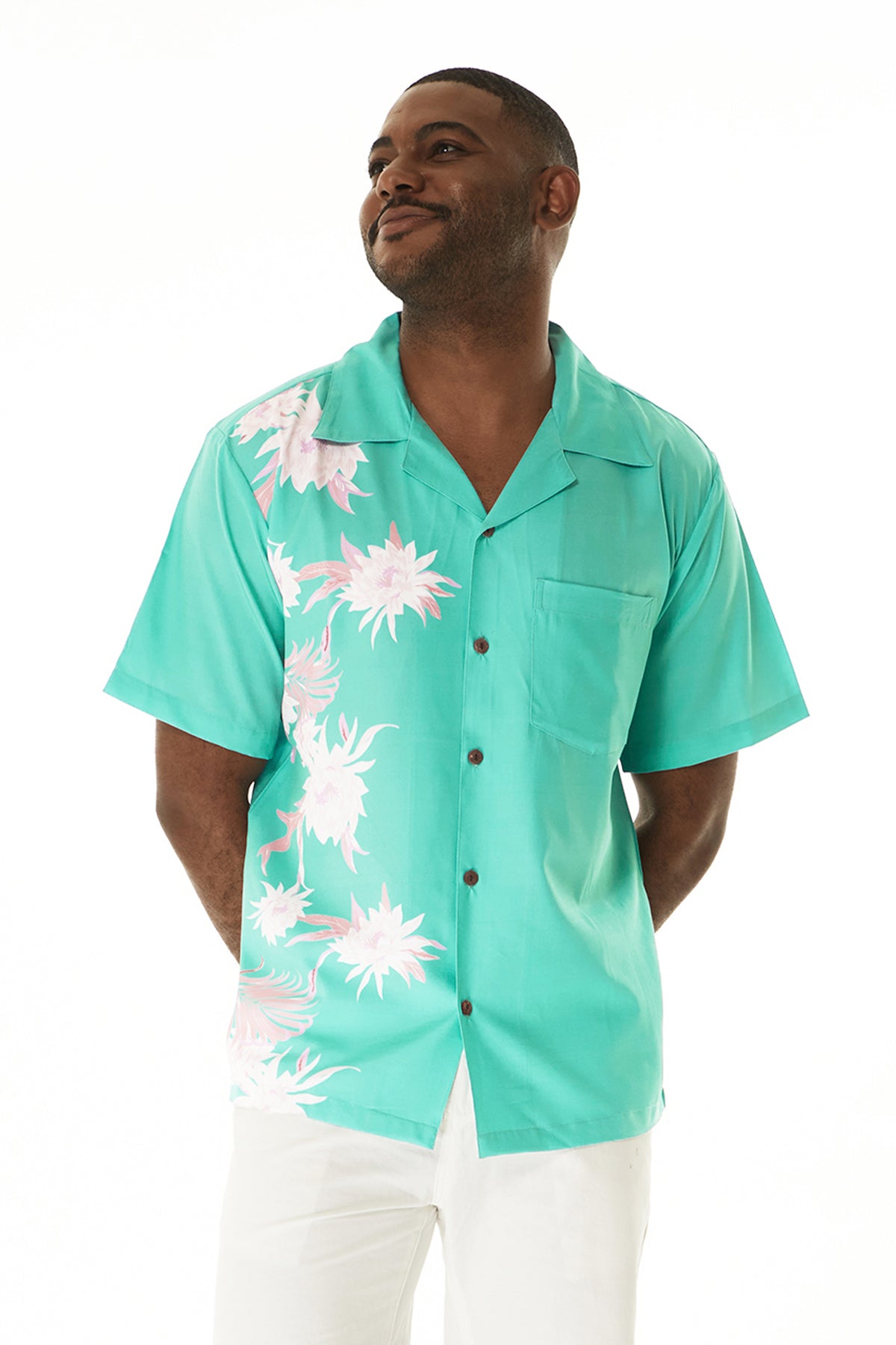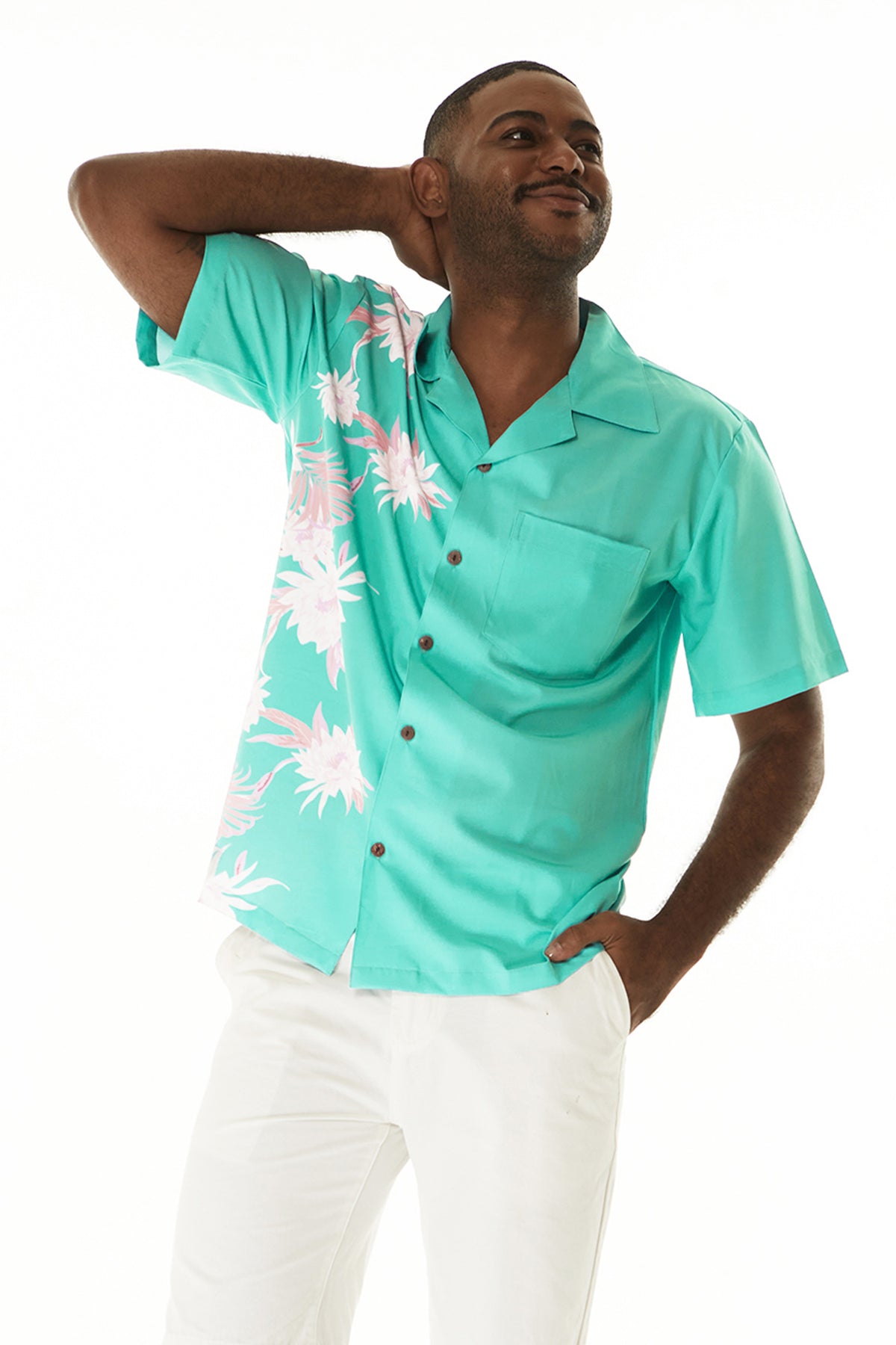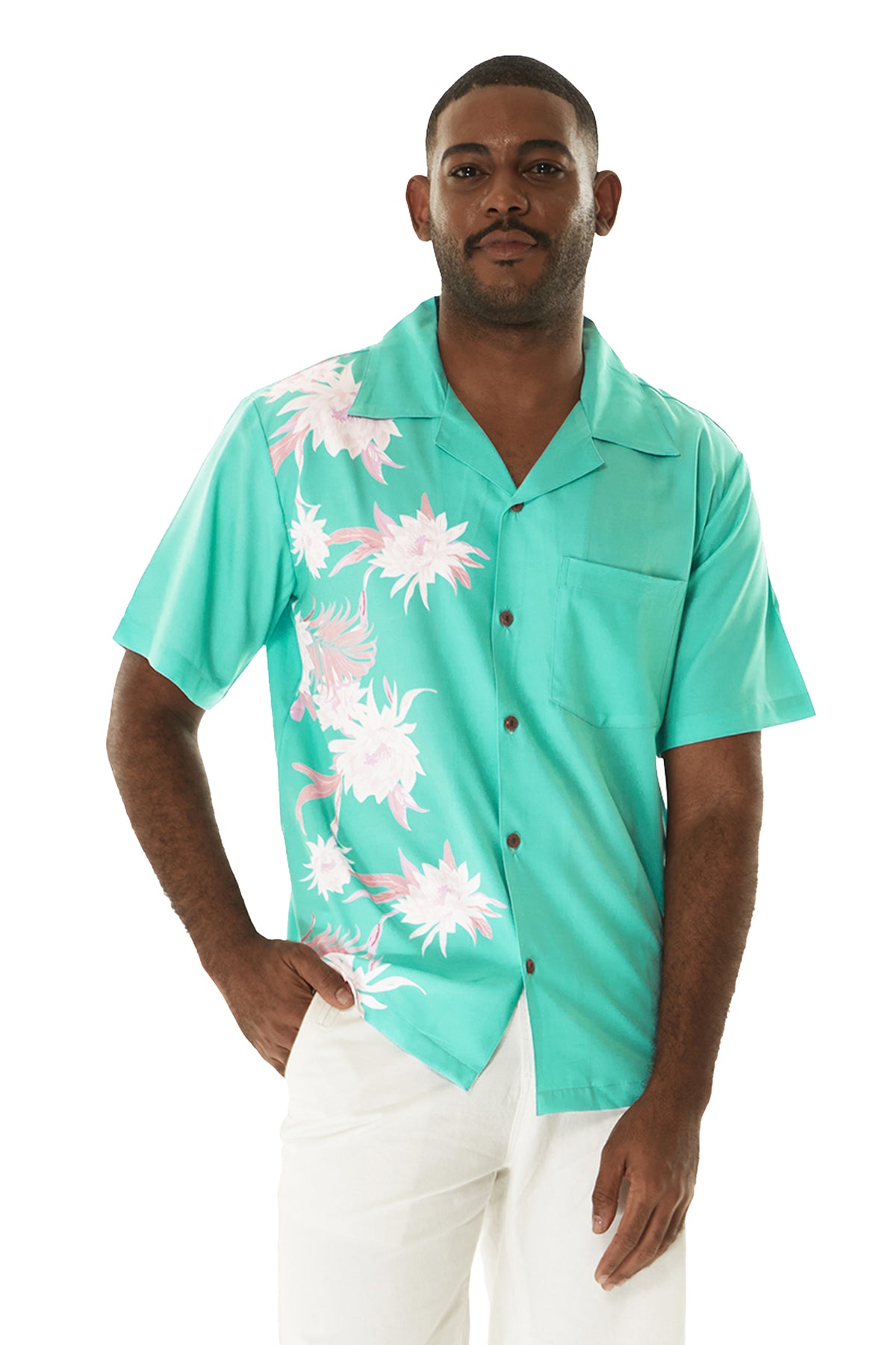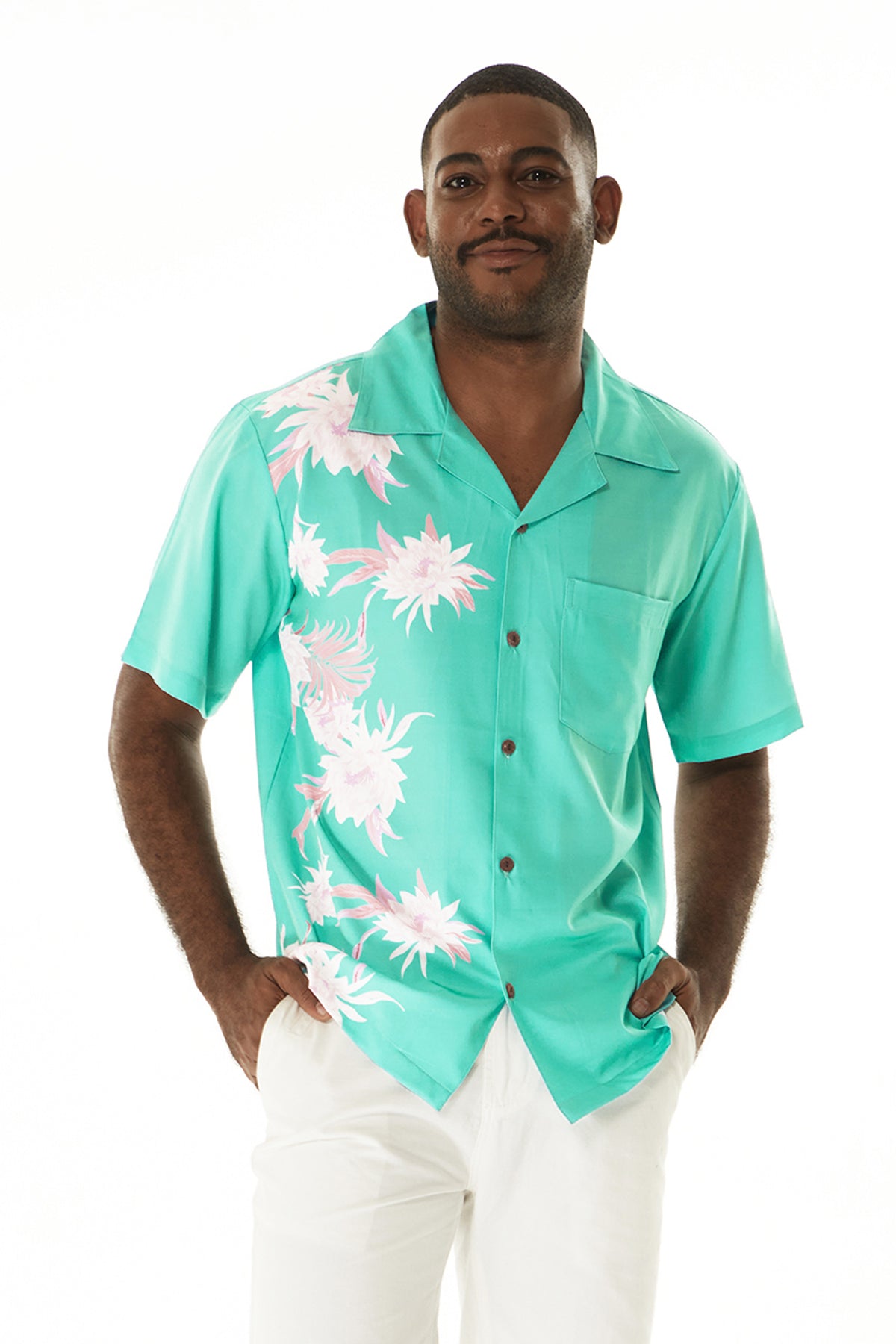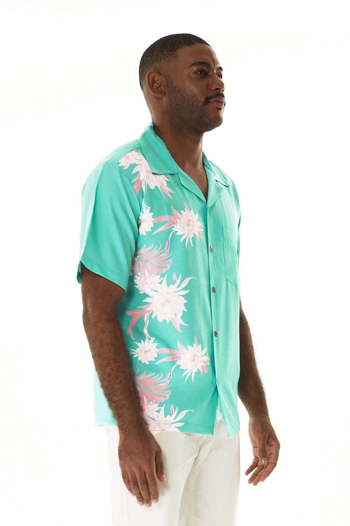 • Wispy Cereus Green – Performance Cabana Shirt 🌿: A modern twist on tropical wear, this cabana-style shirt features our signature Wispy Cereus print with a side panel print for a sporty, elevated look—perfect for warm-weather adventures and stylish getaways.